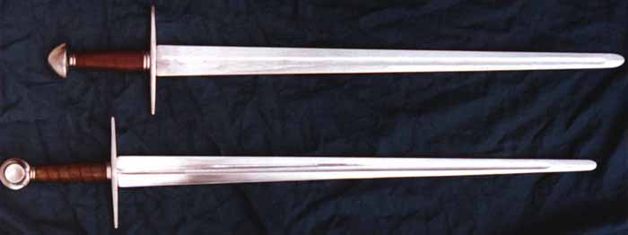 Top - 11th/12th Century Norman longsword with a thirty inch fullered blade. Bottom - 11th/13th Century Medieval sword with a thirty inch fullered blade. |
